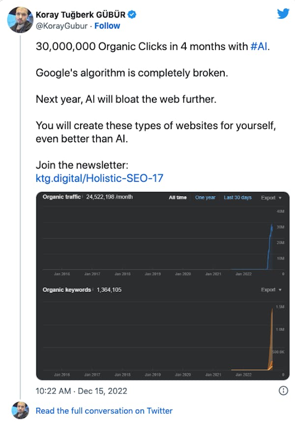 Here’s how we’re using AI content for one of our businesses to drive tons of organic traffic…